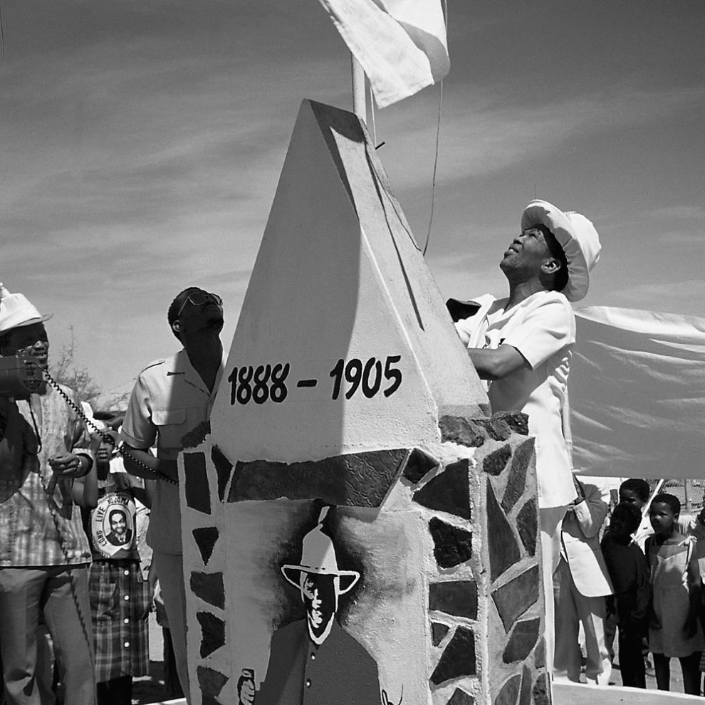 En ce qui concerne les Nama, c’est à partir des années 1930, avec l’inauguration de la pierre commémorative dédiée à Hendrik Witbooi, placée sur la tombe de son fils Isaak. Lors de cette journée, ce sont des reconstitutions de batailles et de discours politiques qui prennent place et prendront une autre tournure, anti-colonialiste, jusqu’à l’obtention de l’indépendance en 1990 et enfin 2013, pour qu’un monument équestre et colonial allemand soit retiré. Il faudra attendre cependant 2021 pour que ces faits soient reconnus en tant que génocide: les rassemblements et la ténacité des communautés ont fini par obtenir des résultats, même si il y a encore un long chemin pour obtenir réparation, comme le rappelle la mémoire actuelle du génocide, sujet du dernier article.